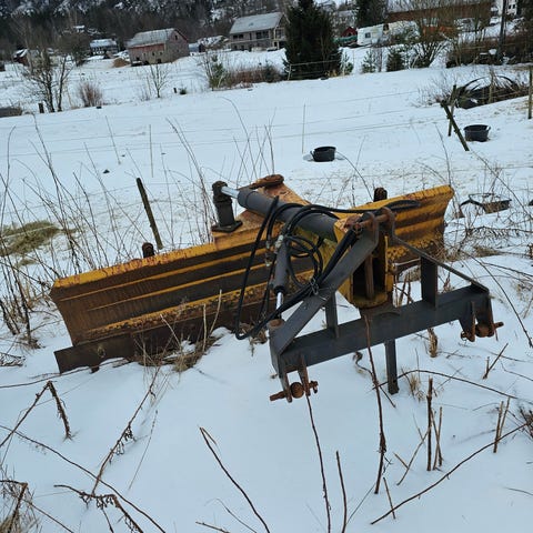 Praktisk, kraftig og velfungerende skjær . Skjæret fungerer bra både som slepeskjær og under snørydding, kan altså rygges med. Vinkel på skjæret kan justeres hydraulisk underveis i kjøring, god svingradius.