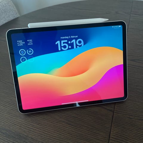Leveres med Apple Pencil, Apple Smart Cover, også skjermen har en glass skjermbeskytter på.