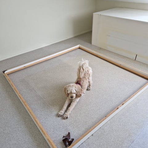 Bildene viser liggeflaten uten overmadrass, med synlige flekker på trekket. Går Ann å ta av hele trekket og vaske det! Wonderland madrasser