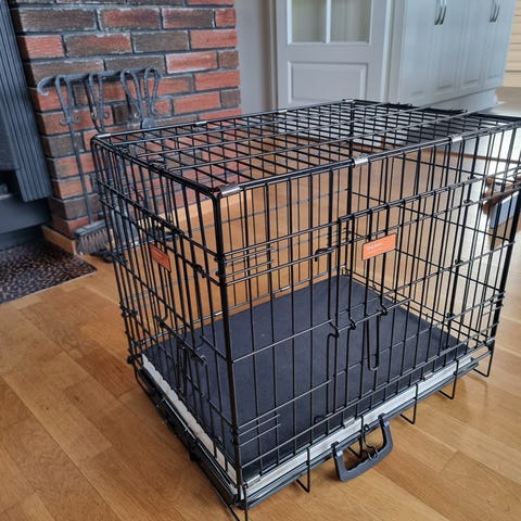 Breeder’s hundebur i metall i svart farge. Buret har gitterkonstruksjon med metallstenger og avtagbar bunnskuff i plast/metall for enklere rengjøring. Bredde: 47 cm, lengde: 66 cm, høyde: 56 cm.