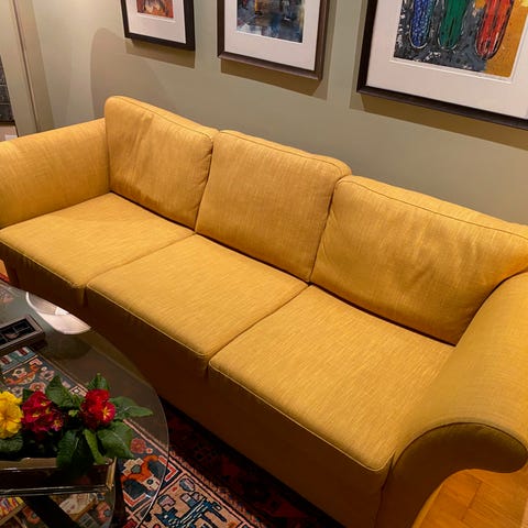 Hel og pen sofa som er nesten 1 år gammel. Fargen er grå. Vaskbare trekk på puter. Ny pris er 8300 kr. Selges pga flytting.