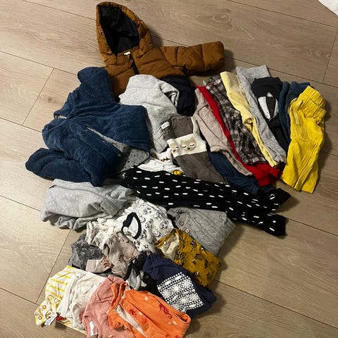 Selger en pakke med Newbie klær i størrelse 56-62. 7 bodyer, 4 bukser, 3 dresser, 1 selebukse og 2 kjoler og 1 genser.