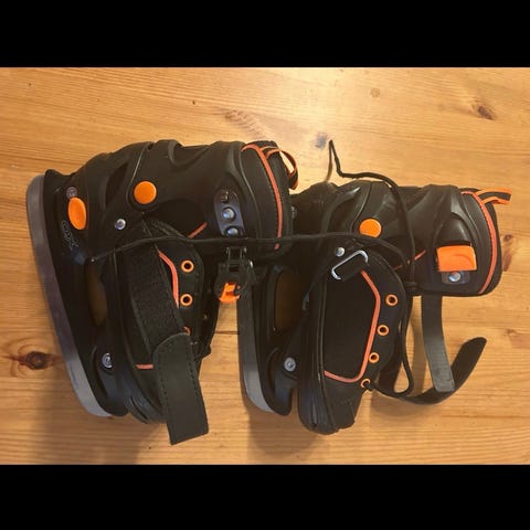 Selger et par skøyter i str 31-34. Kan justeres i størrelsen. Skøytene er helt ubrukte og nye, ligger fortsatt i esken. De er slipt i butikk ved kjøp.