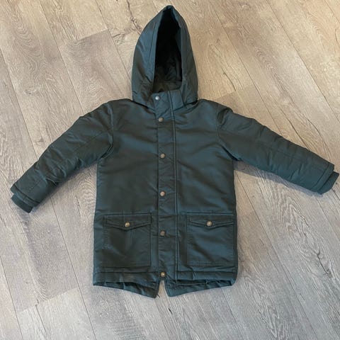 KappAhl vest for gutt i størrelse 128. Vesten er laget i polyester og har grønn farge med kamuflasjemønster og mørke partier øverst. Den har høy krage, glidelåslukking foran og sidelommer. Passer som ytterplagg over genser eller jakke i overgangssesonger og på kjølige dager.