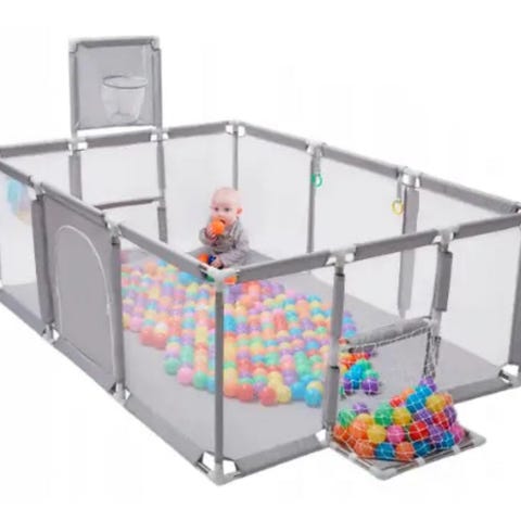 Leke/barne grind med myk og god lekematte, funker også som sikring rundt peis, trapp og som romdeler. Følger med alt som fulgte med når det blei kjøpt. Veggmal for montering der og monteringsanvisning. Lekegrind blir solgt ny uten lekematten, men her følger den altså med.