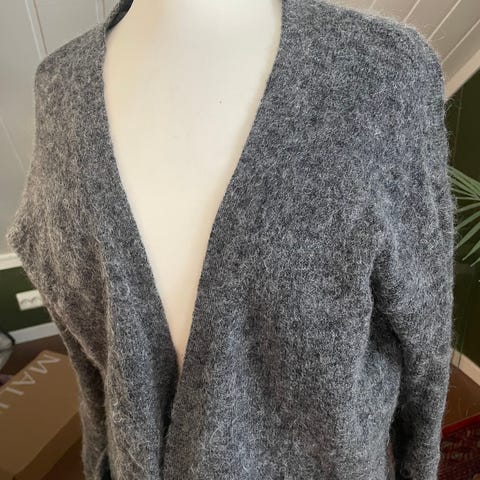 Langermet lett genser fra Massimo Dutti i str. 38 i flerfarget (beige bunn, to blåfarger) Blå jakke får du på kjøpet, den er også veldig lett bomull.