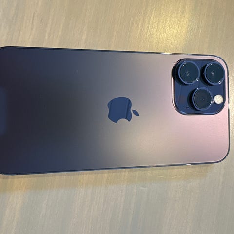 Apple iPhone 14 Pro Max med 128 GB lagringsplass i fargen Deep Purple selges.