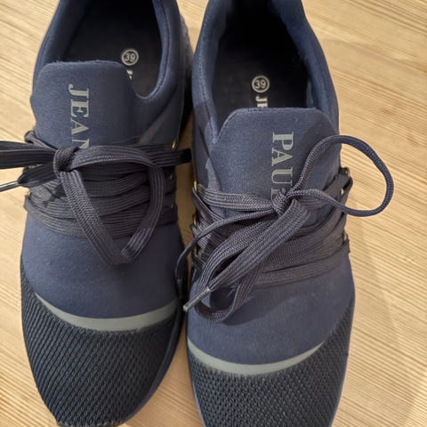 Jean Paul sneakers/joggesko i størrelse 38. Skoene er i brun farge med hvit yttersåle og snøring foran. Overdelen er i tekstil og syntetisk materiale, med polstret kant rundt ankelen for økt komfort. Sålen har mønster for bedre grep.