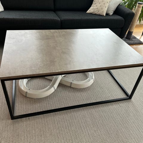 Pent brukt sofabord fra Jysk, i fargen naturlig eik. Noen få bruksmerker på bordplaten.