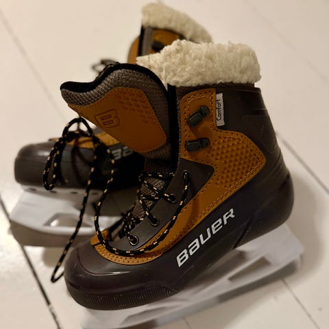 Kosa 400 skøyter for barn i størrelse 34. Skøytene har snøring foran og er i svart og grå farge. Egnet til generell skøytebruk på is, for eksempel på bane eller islagte flater. Utformet som klassiske skøyter med fast hælkappe og polstret ankelparti for støtte.