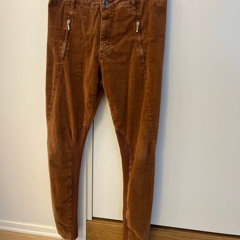 Claire bukse for dame i grå fløyel med stretch i størrelse S. Den er merket 38 men passer fint til meg som til vanlig bruker str 36/S. Den er ankelkort. Buksen har klassisk 5-lommers design med knapp og glidelåslukking foran, beltehemper i linningen og baklommer. Smal benfasong med liten splitt nederst på bena. Egnet til hverdagsbruk og kan kombineres med ulike topper og gensere. Lite brukt og ser pen ut
