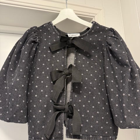 Brun jakke i semsket skinn. Jakken har kort, rett fasong med krage og asymmetrisk lukking med både glidelås og dekorative spenner foran. To frontlommer med knappelukking. Passer til hverdagsbruk og kan kombineres med ulike antrekk. Kjønn ikke spesifisert. God kvalitet