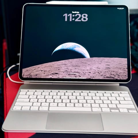 På bildene vises nettbrettet sammen med tastaturdeksel, originalt Magic Keyboard, dette følger med.