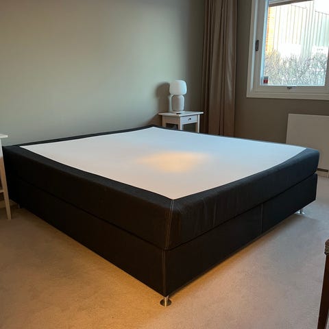 Bohus seng. Klassisk seng med madrass og overmadrass, slik det fremgår av bildene. Passer som hovedseng på soverom eller som gjesteseng. Yttertrekk er avtagbart og kan vaskes. Mål er 180 x 200 cm. Senga består av sokkelramme, to bunnmoduler, tykk mellom-madrass og overmadrass.