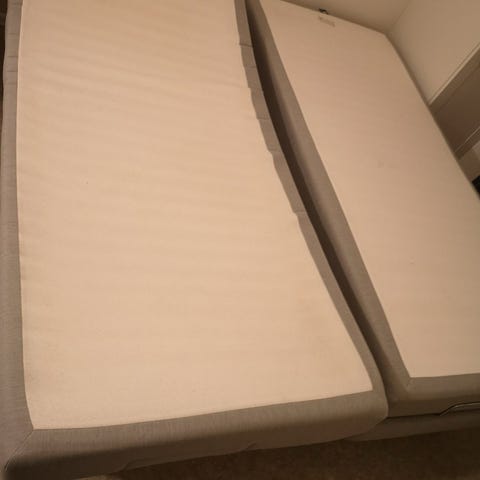 Veldig lite brukt seng, kjøpt på walther Kristiansen. En flekk (som vist på bilde). Kan ta av trekk for å vaske. Kjøpt i 2023. Følger ikke med overmadrass