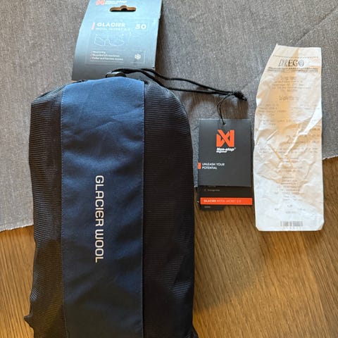 Ubrukt Non-stop Dogwear Glacier dekken. Dekkenet har ullfôr på innsiden for ekstra isolasjon. Yttermaterialet er utformet for å gi beskyttelse mot vær og vind, med refleksdetaljer for bedre synlighet. Modellen har justerbare stropper. Størrelse 27.