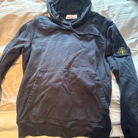 Stone Island genser med halv glidelås for herre i størrelse M. Genseren er svart og laget av bomull. Den har høy krage med glidelås i front og Stone Island-logo på ermet. Passer som hverdagsgenser eller mellomlag på kjøligere dager.