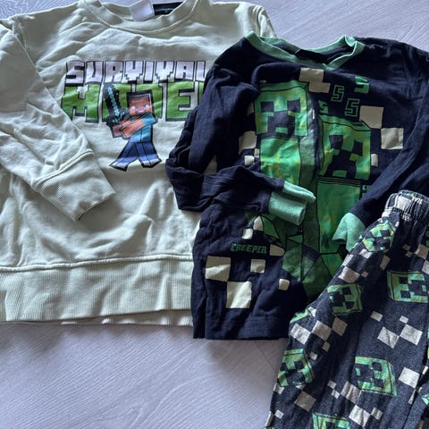 Klespakke Marvel med 2 gensere og en bukse. Pent brukt, noen små nupper. Tjukk i stoffet. Alle i strl 110.