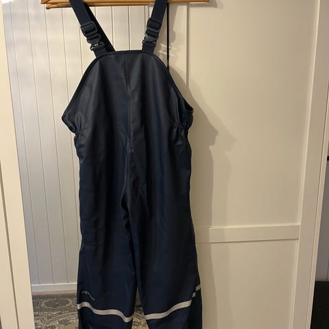 Lindberg foret regnbukse for barn i størrelse 110. Unisex-modell i polyester. Buksen har seler med borrelås og glidelås øverst, samt elastisk linning i livet. Forsterkede felt på knær og nederst på bena, samt refleksdetaljer rundt bena for bedre synlighet. Farge mørke lilla med kontrastfelt. Egnet som ytterbukse i vått vær for barn