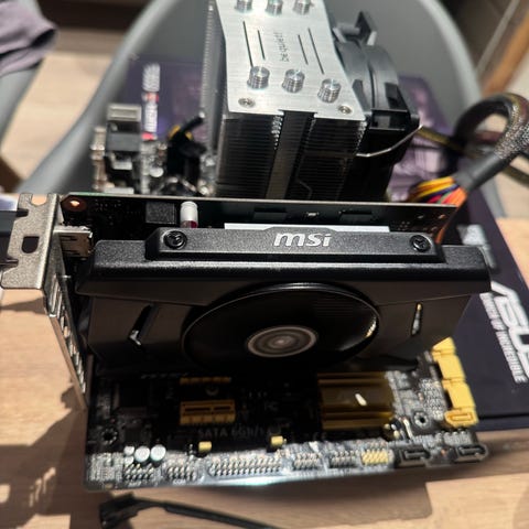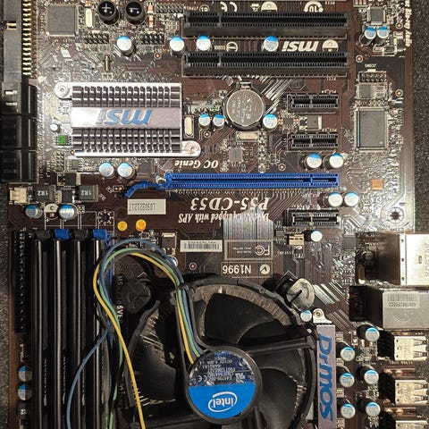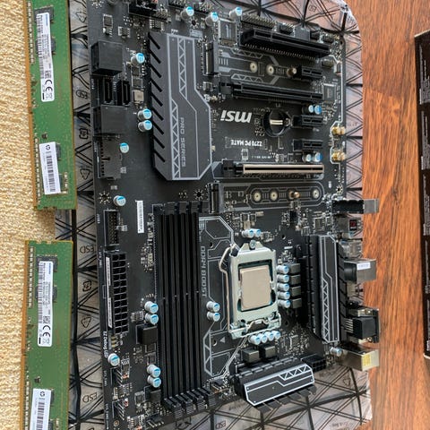 Pakke med hovedkort, cpu og ram.