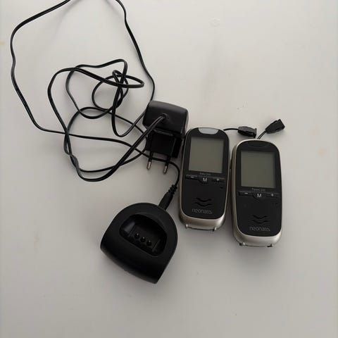Advent Baby monitor babycall i hvit og grønn farge. Settet består av to enheter, en sender og en mottaker, med tydelige knapper for av/på, volum og mikrofon. Enhetene har tilkobling for strøm via kontakt i bunnen. Manual på flere språk følger med. Egnet for lydovervåking av baby eller barn i hjemmet.