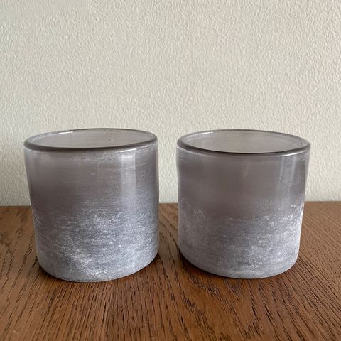 Selger samlet telysholder for kr 50. Høyde 6 cm. Bredde 5-6 cm.