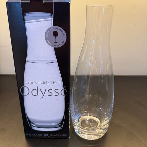 Hadeland Glassverk Odyssé karaffel knuseerstatning norsk design krystallglass interiør borddekking klassisk moderne kjøkkenutstyr glasskunst vann vin decanter
