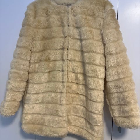 Selger en pent brukt Fuskepelsjakke pga at den er litt for stor til meg. Den er ganske stor I str.Med trykk hemper til lukking.