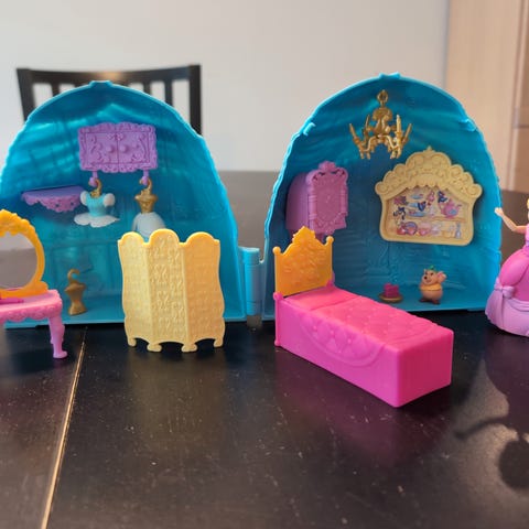 Disney: Little Kingdom Askepott vogn, Sophia the first mor og datter, Bo Peep figur, Minnie Mus figur, rosa koffert