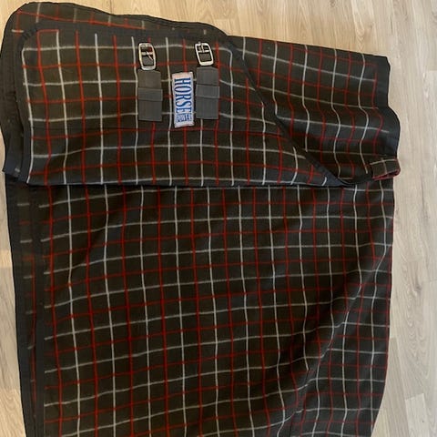B Vertigo hestedekken i størrelse 125 cm (EU) tykkelse er ikke merket, men jeg tipper det er 150-200g