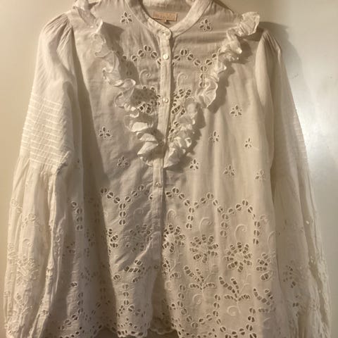 Blusen/skjorten kan også brukes åpen med en fin singlet o.l. under.
