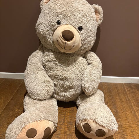 En skikkelig søt bamse på nesten 100cm. Så og si ubrukt og fin i "pelsen". Leter etter ny eier!