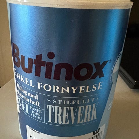 Ble et bomkjøp, da jeg skulle ha halvblank og ikke matt. Selger derfor uåpnet 3 L spann med fargen bomull til halv pris. Fantastisk maling til vegg og lister, og veldig slitesterk.