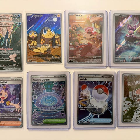 Singles fra Mega evolution og Phantasmal flames selges. Alle kort har sleeve og er oppbevart i perm. Kjøper betaler frakt. Sjekk gjerne ut mine andre annonser for flere samlekort, pokemonkort, samleobjekter fra 90-tallet etc. Frakt kan kombineres.
