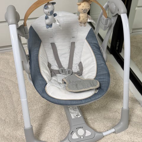 Vi selger denne Ingenuity vippestolen fordi vesla har vokst ut av den. Litt småflekker som kan vaskes bort.
