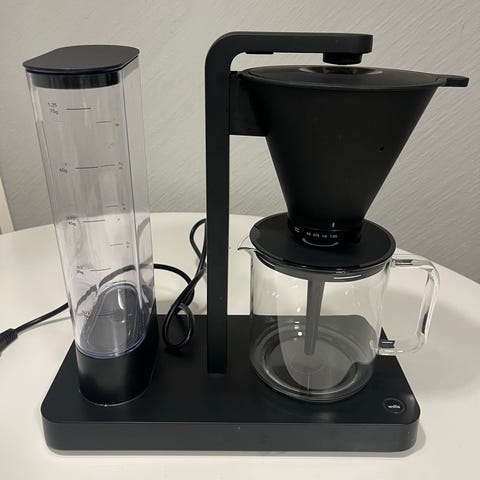 Coline kaffetrakter selges billig. Kaffetrakteren har måleskala på vanntanken for enkel dosering av vannmengde. Glasskannen har håndtak i plast og lokk, og står på en varmeplate i metall. Enheten har av/på-knapp på fronten og strømledning med jordet støpsel. Passer til vanlig filterkaffe i standard filterholder under lokket på toppen.