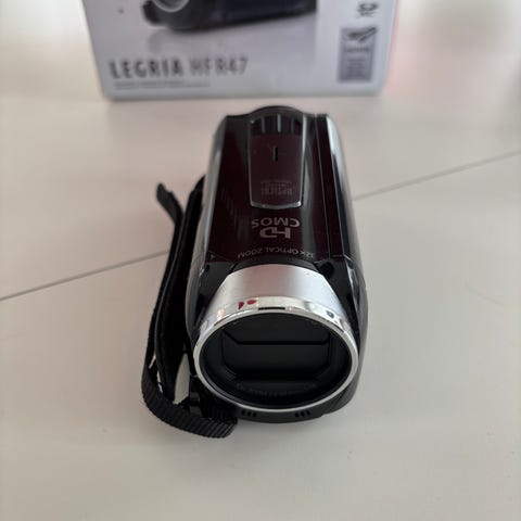 Canon videokamera Legria HFM46 med retningsstyrt mikrofon i svart.