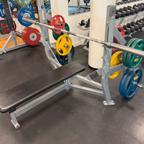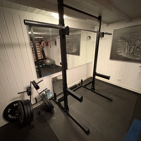 Beinpress treningsapparat i sort farge. Apparatet er platebelastet og egnet for styrketrening av ben og sete. Robust konstruksjon med skråstilt slede og polstret rygg- og setepute for stabilitet under øvelser. Passer til bruk i hjemmegym eller mindre treningsrom der det er behov for målrettet beintrening med frivekter eller vektskiver.