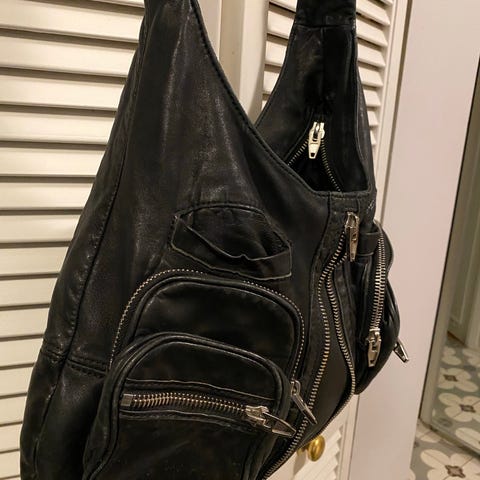 Alexander Wang skulderveske i lær for dame. Vesken er i svart skinn med flere glidelåslommer og metall-detaljer. Lang skulderreim med polstret parti øverst for bedre komfort. Hovedrom med glidelåslukking .Egnet til hverdagsbruk når du trenger en kompakt veske til det viktigste.