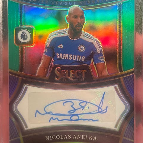 Dette er et André Onana "Select Memorabilia"-kort fra den nyeste Panini Select-serien. Kortet er nummerert til lave 22/25 og inneholder en ekte patch (draktdel). Med det fargerike Tie-Dye-designet er dette et kort som virkelig skiller seg ut i samlingen.