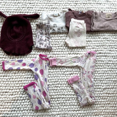 Newbie sett barneklær for jente i størrelse 80 i rosa farge. Sett med kjole med volanger og blomsterprint samt matchende bukse/romper med seler og samme mønster. Passer som hverdags- eller penklær for små barn. Stoffet fremstår som lett og mykt, egnet til innendørs bruk eller milde dager ute med ekstra lag over ved behov.