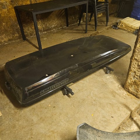Thule takboks i svart utførelse. Takboksen monteres på takstativ, og egner seg for ekstra bagasje på bil. Passer til transport av kofferter, bagger eller annet utstyr på bilturer. Merke og farge er synlig på bildene, denne ble brukt på en Volkswagen golf.