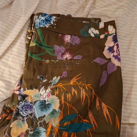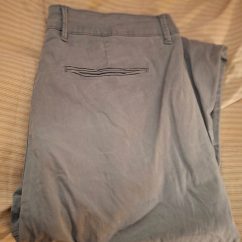 Claire bukse for dame i beige farge, størrelse 46. Buksen er laget i bomull med innslag av elastan for stretch og økt bevegelighet. Klassisk modell med beltehemper i linningen og lommer bak.