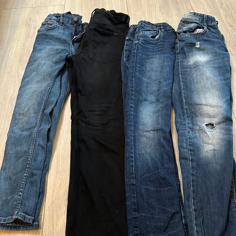 2 Jeans str 146 og 152 . Men den i 152 er litt liten i str så vil si det er 146.