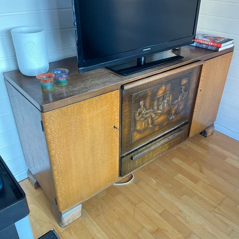 Liten og nett kommode/sjenk i heltre. Antar at den er fra 50-60 tallet.