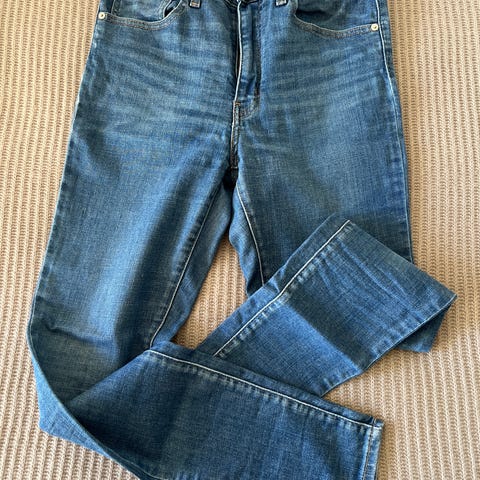 Levi's Premium High Rise Super Skinny jeans for dame. Buksen er svart og laget i bomull. Modellen har høyt liv og super skinny passform. Størrelse er W30. Klassisk femlommersdesign med beltehemper og skinnpatch med Levi's-logo bak i linningen.