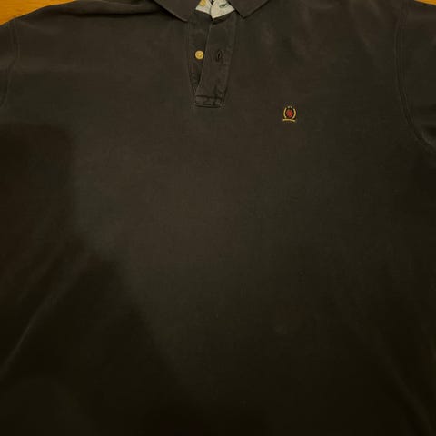 Tommy Hilfiger Denim poloskjorte for herre i størrelse XXL. Skjorten er hvit og laget i bomull med piqué-struktur. Den har kort erm, klassisk krage og knappestolpe med bånd i rødt, hvitt og blått. Lite brodert Tommy Hilfiger-flagg på brystet. Passer til hverdagsbruk og fritid. Eventuelle merker eller slitasje bør kontrolleres nærmere på bildene. Enkelte flekker/ misfargin.