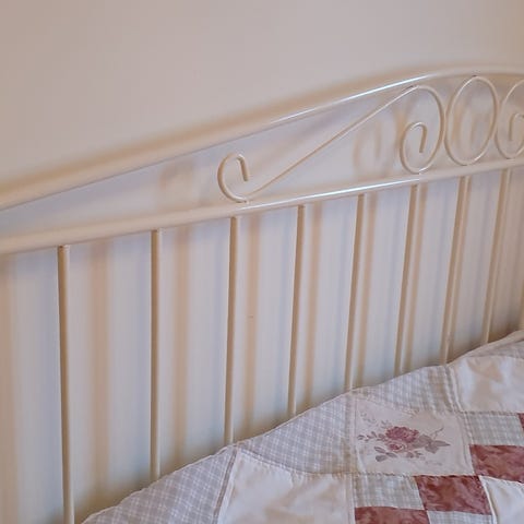 180 seng, sengegavl, nattbord og lamper