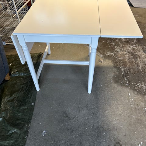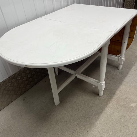 Eldre hvitmalt klaffebord gis bort ved henting. Deler for å holde klaffene oppe mangler.