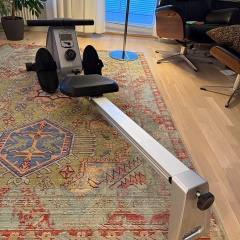 Utstyret kan brukes til variert kondisjons- og styrketrening hjemme, med mulighet for både rolig og mer intensiv trening av hele kroppen.